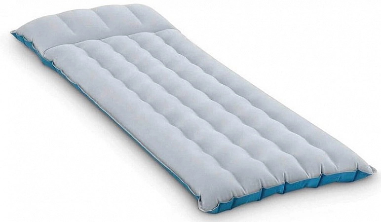 Le tapis de camping modèle 67997 d'Intex est spécialement conçu pour les amateurs de tourisme et d'activités de plein air. Il est incroyablement compact une fois plié et ne pèse que 1,7 kg, et après gonflage, il se transforme en un lieu de couchage à part entière pour une personne. Le modèle est équipé de nervures de rigidification longitudinales, et pour le plus grand confort de couchage en randonnée, la conception prévoit un appui-tête.L'absence de pompe dans le kit pour la plupart des personnes qui l'ont achetée n'est pas devenue un problème, car en raison des petites dimensions, il est possible de gonfler le matelas sans elle. Dans les revues, on trouve souvent des informations selon lesquelles avec le temps, le matelas commence à libérer de l'air autour de la valve, mais ce problème est typique de nombreux modèles de la marque Intex.
