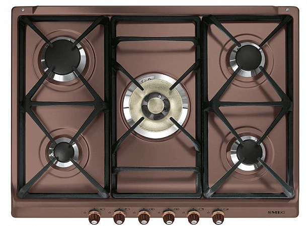 Le panneau à gaz de la marque italienne Smeg SR775RA a séduit de nombreux utilisateurs. Tout d'abord, les propriétaires notent un design intéressant. À leur avis, les raccords en cuivre ont l'air assez riches, antiques, mais s'estompent avec le temps et perdent leur aspect présentable. Le double brûleur pour le chauffage est assez puissant, il est régulé par deux interrupteurs. La table de cuisson est facile à entretenir.Les treillis se composent de trois sections, il est possible d'en retirer une et de la laver. Les utilisateurs notent également la qualité de construction, le panneau indépendant dispose de toutes les fonctions nécessaires, telles que le contrôle du gaz et l'allumage électrique. Pas assez de protection contre les enfants. Sinon, le Smeg SR775RA a mérité sa place dans le classement des meilleures plaques de cuisson 5 feux.