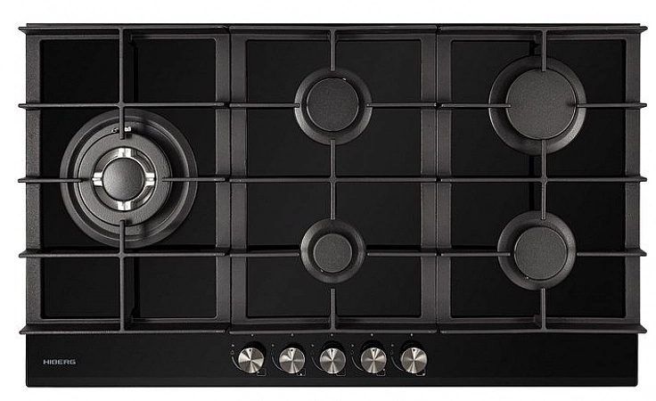 HIBERG VM 9055 B est une autre plaque de cuisson encastrable digne de notre classement des meilleures avec 5 brûleurs. Les femmes au foyer aiment ce modèle non seulement en raison de sa fonctionnalité, mais aussi en raison de son prix abordable.La surface de la plaque est en verre trempé, ce qui la rend très attrayante, en particulier en combinaison avec des grilles en fonte. Mais cela ajoute également des inconvénients dans les soins, des taches souvent visibles restent. Le panneau est spacieux, les brûleurs sont idéalement situés les uns par rapport aux autres, vous pouvez cuisiner tous en même temps. Il y a tous les extras nécessaires : échauffement express, double couronne, WOK. Il contient également toutes les fonctions responsables de la sécurité. Parmi les inconvénients, l'hôtesse a noté les commutateurs rotatifs, qui glissent souvent dans la main en raison de la forme.