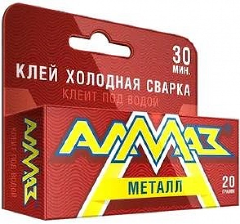 Le meilleur participant de notre classement "ALMAZ" METAL a acquis une grande popularité auprès des consommateurs en raison de sa grande efficacité et de sa facilité d'utilisation. L'adhésif à base d'époxy à deux composants présente les meilleures caractéristiques d'adhérence par rapport aux métaux ferreux et non ferreux. La soudure à froid présentée fixe solidement les pièces, élimine une petite fuite dans le radiateur ou le système d'alimentation en eau et restaure l'intégrité de l'article. Parmi les avantages, il y a la possibilité de travailler avec une surface humide. Tout le monde n'aime pas l'étape de prétraitement de la colle - la couche supérieure est très collante et vous salit les mains.