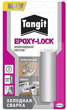 Après préparation mélange à deux composants soudage à froid TANGIT EPOXY-LOCK pour candidature l'utilisateur aseulement 3 minutes. L'adhérence élevée facilite la réparation manuelle des fuites dans les conduites d'eau et les radiateurs sans bloquer les conduites. La colle universelle est assez écologique, car elle ne contient pas de solvants. Les utilisateurs aiment qu'après durcissement, la composition maintienne les pièces collées (bois, plastique, métal, béton, etc.) à -40˚C, à l'abri de l'eau, des solvants, des huiles et des essences. Parmi les lacunes - cela ne fonctionnera pas avec des matériaux tels que le polypropylène et le téflon.