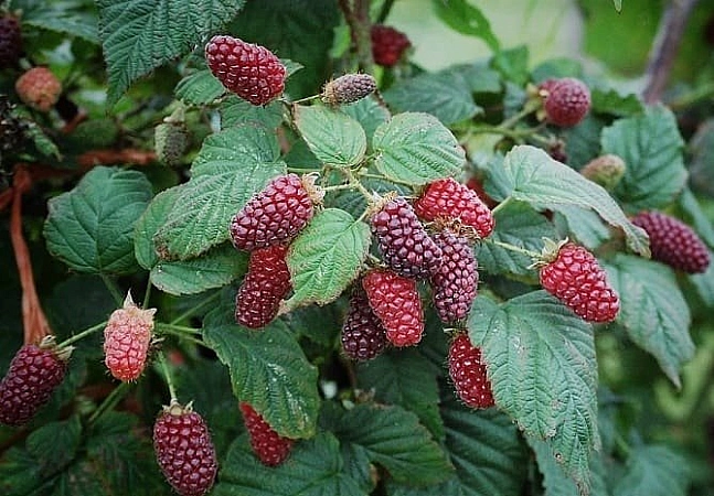 Tayberry est un hybride de mûre et de framboise avec de grosses baies rouges qui combinent les saveurs des deux cultures.