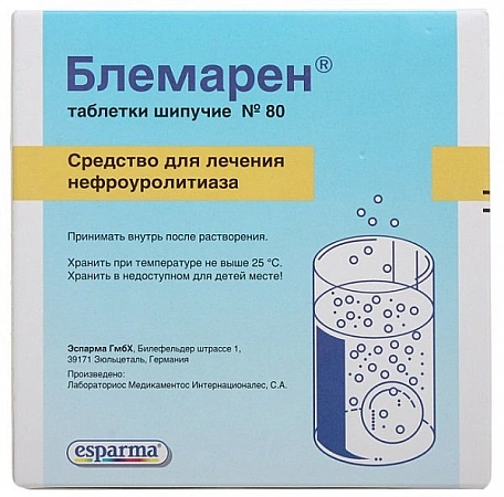 Blémarin | 1240 roubles. (80 tab.) | Acide citrique, bicarbonate de potassium, citrate de sodium | 4-6 mois | Espagne | Libre |