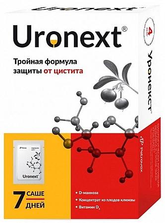 Uronext est utilisé non seulement pour la prévention, mais également pour le traitement de la cystite. De plus, le cours de sa réception n'est que de 7 jours.