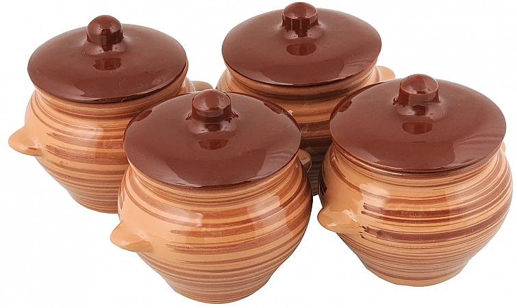 La céramique est un mélange de différents matériaux : argile, kaolin, feldspath, quartz. Les produits finis sont cuits à haute température et émaillés pour une plus grande durabilité. En conséquence, la structure est plus solide que, par exemple, les homologues en argile, cependant, il vaut mieux éviter les chutes de température. Les femmes au foyer ne recommandent pas de placer des récipients en céramique dans un four préchauffé, car le revêtement pourrait se fissurer. De plus, ce matériau absorbe les odeurs alimentaires et les graisses, il est donc préférable d'avoir un pot séparé pour chaque type d'aliment.