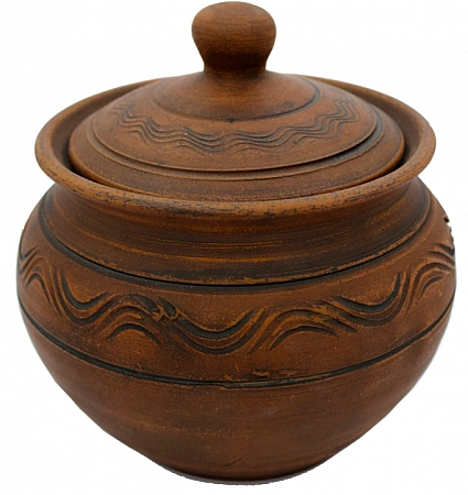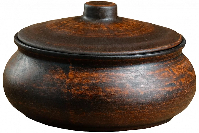 L'argile est un matériau respectueux de l'environnement et 100% sans danger pour la santé. Il chauffe doucement et uniformément, grâce à quoi les aliments ne brûlent pas et sont parfaitement cuits. Il garde bien la chaleur et ne permet pas aux aliments de refroidir même à l'air libre. Ces récipients ont généralement un col étroit et lors de la cuisson, le condensat s'écoule à l'intérieur et ne s'évapore pas. Pour cette raison, la nourriture est plus juteuse et savoureuse. Le plus souvent, les produits sont fabriqués à la main et ont un design authentique unique. Dans le même temps, la faïence affecte non seulement le goût, mais également la valeur nutritionnelle du plat, car les vitamines contenues dans les produits ne sont pas détruites lors de la cuisson de cette manière, même à des températures élevées.