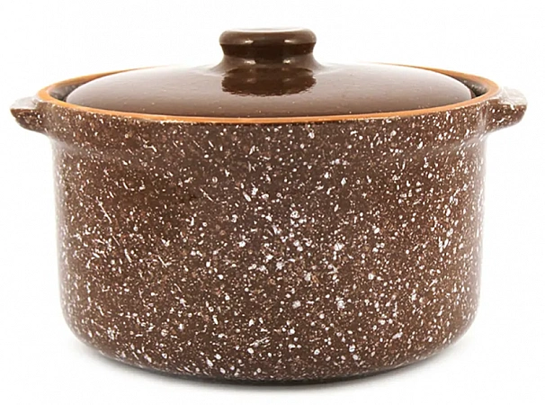 La marmite-faitout est en argile rouge, idéale pour la cuisson des ragoûts, des légumes, des céréales et des soupes. Le matériau répartit uniformément la chaleur et permet aux ingrédients de conserver un bon goût, un arôme et des vitamines. Les parois ont une épaisseur optimale, de sorte qu'après avoir été retirées du four, la structure conserve longtemps la chaleur et les aliments restent chauds. Avant utilisation, les plats doivent être préparés conformément aux instructions afin que rien ne colle au fond pendant la cuisson et qu'il soit facile à nettoyer. Le seul point négatif est la poignée sur le couvercle, qui glisse si vous ouvrez la marmite avec des gants de cuisine.