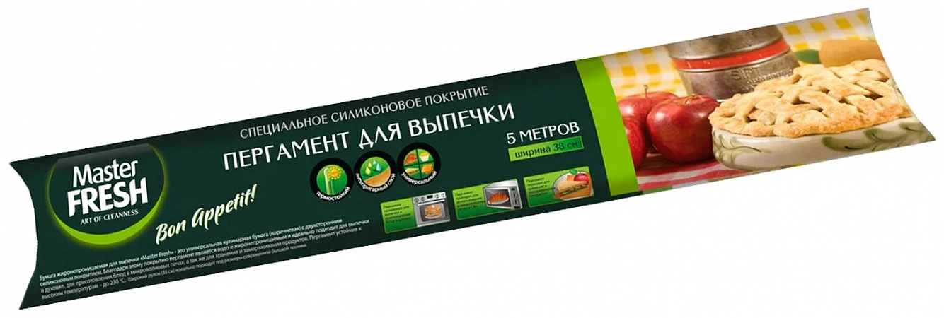 Une autre bonne option pour cuisiner tous les plats. Il possède un revêtement siliconé qui augmente les propriétés antiadhésives du produit et évite de coller pendant la cuisson. Travailler avec Master FRESH est un plaisir - les feuilles sont denses, ne se déchirent pas et peuvent être réutilisées. Ils résistent bien aux températures élevées et ne laissent pas passer l'humidité, ils sont donc idéaux non seulement pour la cuisson, mais aussi pour la conservation des plats cuisinés. Protégez la vaisselle de la saleté et après le travail, la plaque de cuisson ou le moule restera propre. Malheureusement, tous les produits de boulangerie ne se séparent pas aussi bien et, dans certains cas, des difficultés peuvent survenir.