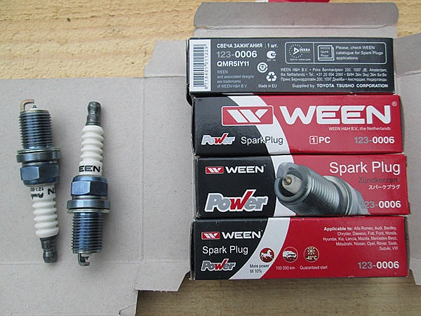 De nombreux propriétaires de voitures d'occasion sont souvent confrontés au fait que les grandes marques les ignorent pratiquement. Il existe sur le marché de nombreuses bougies d'allumage recommandées pour les voitures neuves, et il n'existe pratiquement aucun modèle pour les moteurs d'occasion. La marque chinoise Ween corrige ce défaut. Devant nous se trouvent des bougies recommandées spécifiquement pour les voitures anciennes. La disposition ici est classique. L'électrode centrale est en nickel, mais il y a 3 modules latéraux à la fois. Cela donne une étincelle stable dans toutes les conditions, même s'il y a des problèmes dans le système d'allumage. Malheureusement, il est difficile de trouver des avis et des tests pour ces bougies sur le net, vous devrez donc faire un choix en faveur de la marque à vos risques et périls.Cependant, il n'y a pas de plaintes.