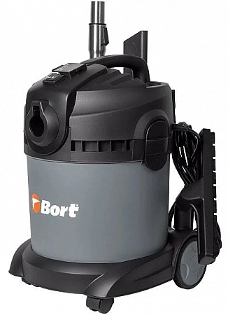 L'aspirateur de chantier Bort plaît par ses caractéristiques. Puissance 1400 W, conception sans sac, vide 230 mbar.Et même classe de poussière M pour l'aspiration de particules inférieures à 2 microns de béton, bois, briques, céramiques. C'est un bon aspirateur pour les ateliers de serrurerie à domicile, le nettoyage après réparation, le soufflage des allées de jardin, la collecte de petites flaques d'eau. Il dispose même d'une fonction d'auto-nettoyage qui s'active à chaque fois que le filtre est obstrué. Et tout ce plaisir coûte moins de 200 $.