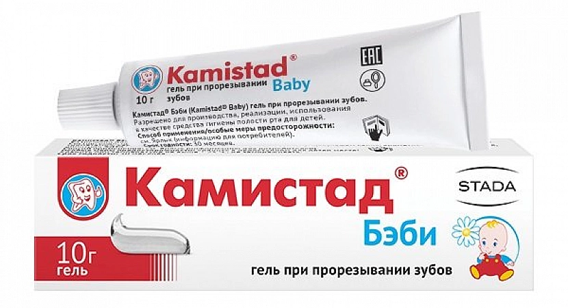 Si le Kamistad habituel n'est autorisé qu'à partir de 12 ans, alors le bébé Kamistad-gel peut être utilisé à partir de 3 mois. Il va anesthésier, soulager l'inflammation et cicatriser les gencives. La composition contient de la lidocaïne, ce qui signifie qu'elle peut être utilisée pour les douleurs intenses lors de la dentition.
