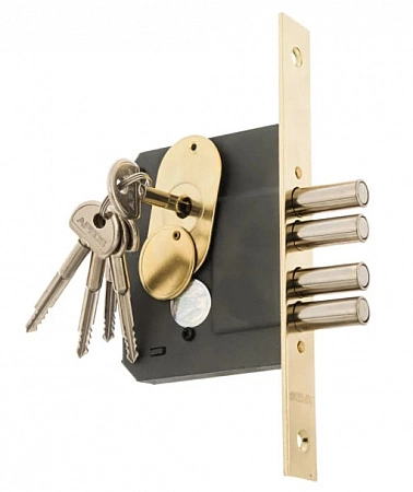 La sécurité est la fonction principale de la serrure, et si votre appartement en a besoin, assurez-vous de regarder ce modèle. C'est un château anglais avec un boulon carré, mais un grand nombre de loquets. De l'intérieur, vous pouvez bloquer à la fois le verrou lui-même et le loquet. Même les propriétaires de la clé d'origine n'entreront pas dans l'habitation, sans parler des clés principales que les attaquants récupèrent rapidement pour presque tous les mécanismes.Il convient également de noter la compacité de l'appareil. L'écartement de la serrure est de 60 mm, mais le corps ne mesure que 20 mm, de sorte que le design ne gâchera pas l'apparence de votre porte. Certes, il n'y a pas d'options de couleur, et c'est déjà un inconvénient certain.