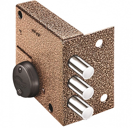 Elbor est une entreprise russe considérée à juste titre comme l'un des leaders du marché. Maintenant, nous avons devant nous, sinon le meilleur, du moins l'un des meilleurs verrous à levier du catalogue de la marque. Il est puissant et protégé de la plupart des types d'impacts. Barre transversale avec noyaux et base durcie. Ils ne se plient pas et ne se cassent pas. Il y a un loquet supplémentaire actionné par une poignée séparée. La languette est sur le dessus et sa position peut être modifiée. Toujours dans le catalogue, il est facile de trouver le même modèle, mais avec des lattes verticales. Mais il faut comprendre que toutes les portes métalliques ne conviennent pas à cette serrure. L'épaisseur du boîtier est de près de 50 millimètres, et de nombreux blocs modernes sont beaucoup plus minces, et la serrure ne s'y adaptera tout simplement pas.