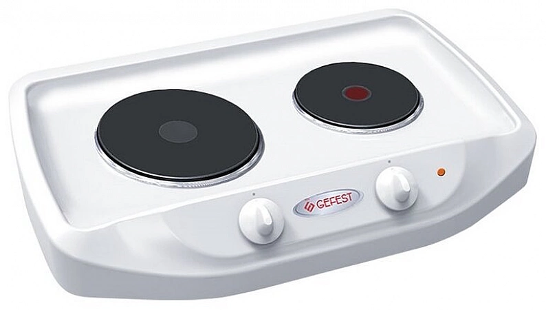 Une cuisinière électrique compacte à 2 brûleurs d'une célèbre entreprise biélorusse est très populaire auprès des résidents d'été russes. L'appareil est équipé de deux brûleurs à crêpes en fonte de diamètres différents. Un - 18 cm et une puissance de 1200 W et le deuxième plus petit brûleur express (au milieu marqué d'un cercle rouge) avec un diamètre de 15 cm et une puissance de 1500 W. Les brûleurs sont situés dans un renfoncement du lit, une telle conception de la surface de travail ne permet pas au liquide renversé de s'écouler. La tuile est contrôlée par deux boutons rotatifs qui peuvent être tournés en douceur dans le sens des aiguilles d'une montre et dans le sens inverse des aiguilles d'une montre. Le chauffage est fourni en 6 modes - de "Mijotage" à "Maximum". L'indicateur de contrôle vous avertit lorsque le chauffage est éteint. Pour les acheteurs, l'avantage du modèle était un brûleur express avec une fonction de chauffage accéléré, équipé d'un fusible de protection qui coupe le courant électrique lorsque la température sélectionnée est atteinte. Les utilisateurs notent également la présence de pieds réglables parmi les avantages.
