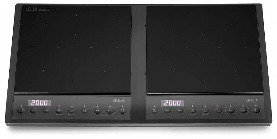 Un modèle pratique de cuisinière à induction à deux éléments chauffants deviendra un assistant indispensable dans le pays. Chaque brûleur chauffe une zone d'un diamètre de 26 cm, adaptée aux plats en matériaux ferromagnétiques. La table de cuisson est équipée d'un panneau de commande électronique avec des boutons à membrane, que de nombreux utilisateurs trouvent supérieurs aux boutons tactiles, qui souvent ne répondent pas au toucher en raison de l'humidité des mains mouillées. Le panneau de commande peut être verrouillé pour éviter toute pression accidentelle. Pour la cuisson, 7 programmes préréglés et 10 modes de chauffe sont disponibles : réglage de la puissance de chaque brûleur dans la plage de 200 à 2000 W. La plaque est protégée contre la surchauffe, il y a un indicateur de chaleur résiduelle, un système de refroidissement avec un refroidisseur à faible bruit.