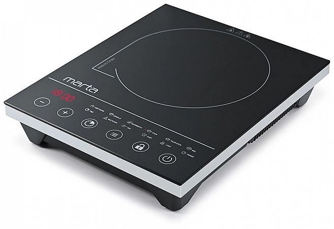 Un autre représentant de la production chinoise a fait ses preuves auprès des résidents d'été russes. La table de cuisson électrique à induction compacte ne peut être utilisée qu'avec des ustensiles de cuisine spécialement conçus pour le chauffage par induction, sinon l'appareil ne s'allumera tout simplement pas. L'appareil dispose de 5 programmes de cuisson - réglage intelligent du chauffage et du temps. Sur l'écran tactile, vous pouvez régler manuellement la puissance de 200 à 2000 W, ce qui correspond à une température de 60 à 270°C. Vous pouvez suivre le temps de cuisson sur l'affichage électronique. Dans le même temps, la plaque à induction est protégée contre la surchauffe, équipée d'un thermostat.Sur la surface en vitrocéramique, aucun dépôt ne se forme même lorsque du liquide est renversé, le panneau de travail s'essuie facilement avec un chiffon doux avec des détergents liquides.