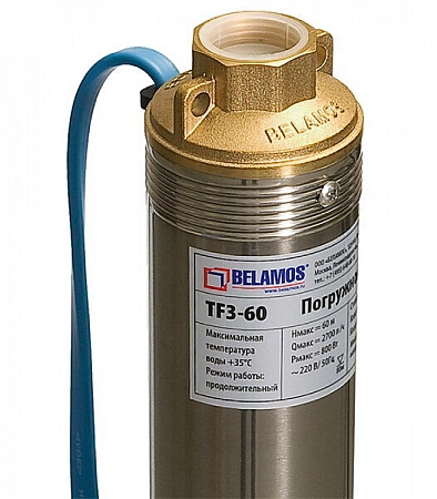 La pompe de forage russe deviendra un bon analogue de la série Grundfos SQE 2-55 avec une puissance nominale de 700 watts.La différence de performances et de débit de pression est minime : 2,7 contre 3 m³/h et 60 contre 68 m.Mais BELAMOS TF3-60 coûte presque 10 fois moins cher que la célèbre marque. Un câble de 35 m de long est fourni avec l'appareil, ce qui est pratique pour le raccordement dans des puits peu profonds. La protection contre la surchauffe empêchera l'enroulement de brûler. Dans les avis, les propriétaires rapportent que la pompe russe les sert depuis plus de 10 ans avec une utilisation constante. L'équipement produit jusqu'à 4 atm, il convient donc même pour un chalet de 3 étages. Mais l'alimentation en eau démarre brusquement, accompagnée d'un coup de bélier - il vaut mieux prévoir un démarrage en douceur. Le clapet anti-retour peut fuir par intermittence.