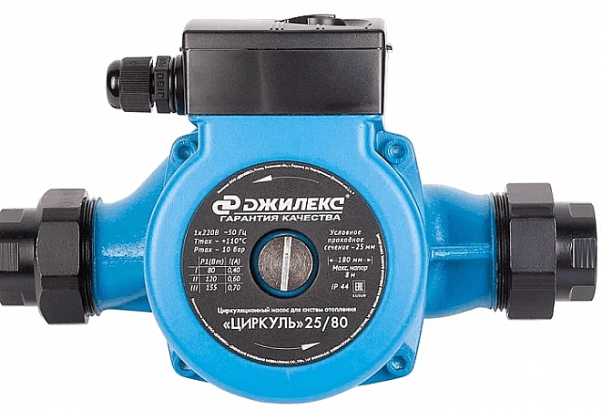 L'analogue russe de la pompe Grundfos UPS 25-60 produit la même tête de 6 m, mais il coûte presque trois fois moins cher. En termes de température maximale autorisée du liquide de refroidissement, le modèle bon marché n'est en aucun cas inférieur au produit de la marque éminente - tout de même 110 ⁰С. Whirlwind Ts-25/6 a une puissance de 90 W et laisse passer 3 tonnes d'eau propre par heure. La longueur d'installation et les filetages de connexion sont complètement les mêmes, de sorte que le Russian Whirlwind peut être installé à la place de Grundfos s'il se casse. Le corps en aluminium assure un faible poids de 2,8 kg.Le rotor de type humide est lubrifié à partir du liquide de refroidissement lui-même, ce qui contribue à un fonctionnement ininterrompu à long terme du système de chauffage. Dans les avis, les propriétaires signalent à plusieurs reprises le fonctionnement silencieux de la pompe à eau. Ceci est utile pour ceux qui ont une chaudière de chauffage située près du lit.