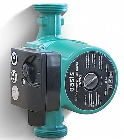 Oasis CR/CB/CN 25/2 est doté d'une puissance de 60 W, presse l'eau à une hauteur de 2 m avec une capacité de près de 2000 litres par heure. Selon ses caractéristiques, l'analogue chinois convient tout à fait à la place de la pompe de circulation Grundfos UP 20-15, qui, avec une puissance de 65 W, a une capacité de 1,75 m³ et une tête de 1,2 m.Mais le prix d'Oasis est 10 fois moins cher. Ces modèles de faible puissance conviennent mieux aux maisons à un étage de faible hauteur, aux systèmes de chauffage avec pose de tuyaux inférieurs ou à un plancher chauffé à l'eau. Le fabricant accorde une garantie de 2 ans sur le produit, assurant que la pompe durera 7 ans. D'après les avis, on peut voir que pour certains, la pompe fonctionne depuis 8 ans sans panne. La rotation de la roue est presque inaudible et l'équipement peut être monté verticalement ou horizontalement. Le corps en fonte résiste bien à la corrosion et à une température de liquide de refroidissement élevée de 110 ⁰С.