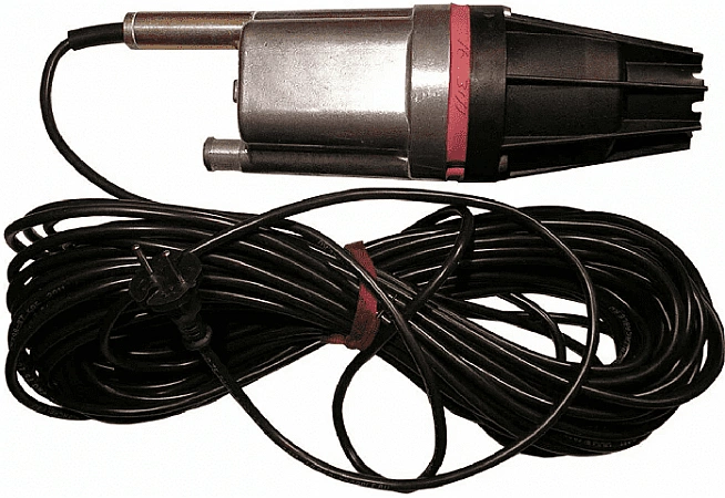Les pompes submersibles sont entièrement submersibles et peuvent être utilisées toute l'année grâce au remplissage époxy étanche. Le champ électromagnétique excite le mouvement de l'armature avec la tige et le piston. En raison des oscillations du diaphragme 50 fois par seconde, un vide est créé, l'eau est aspirée et expulsée à travers le tuyau de pression.