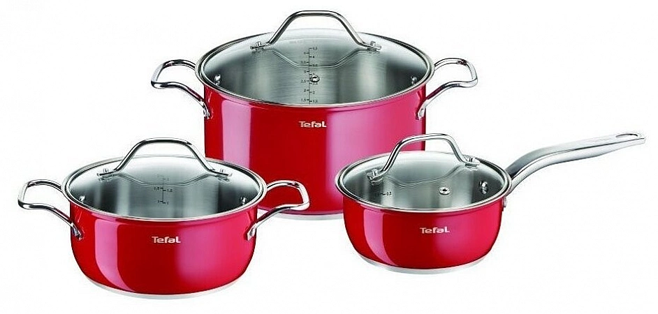 L'ensemble lumineux de la célèbre marque comprend l'ensemble parfait, qui comprend une grande casserole d'un volume de 4,5 l (ø 24 cm), un petit pot de ø 20 cm d'une capacité de 2,5 litres et une louche, 1,2 litres, d'un diamètre de 16 cm et couvercles. Avec cet ensemble, l'hôtesse peut préparer un repas complet à partir de n'importe quel type de viande, poisson, légumes, entrée, accompagnement et sauce. Les ustensiles en acier inoxydable ont une échelle de mesure à l'intérieur et sont recouverts d'un émail rouge durable à l'extérieur. Le fond épais des casseroles et de la louche permet de faire frire les ingrédients, grâce au disque en acier soudé.Les couvercles en verre avec évents de vapeur s'adaptent parfaitement aux récipients, à travers le verre résistant aux chocs, vous pouvez observer le processus de cuisson. Les poignées rivetées des casseroles et des couvercles ne brûlent pas les mains, car elles sont creuses et ne chauffent pas. Les utilisateurs apprécient le design lumineux de l'ensemble, la qualité de la vaisselle, mais notent le poids élevé, dû au fond multicouche épais.