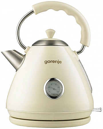 Une bouilloire électrique beige d'une entreprise slovène impressionnera les amateurs de style rétro et confort. Le modèle a tous les avantages que les nominés de cette note ont : la bouilloire a des doubles parois pour éviter la surchauffe du boîtier, il est donc impossible de se brûler dessus, et il y a aussi un indicateur de marche, une échelle de remplissage du bol, un thermomètre précis et un compartiment de rangement du cordon. L'appareil léger contient 1,7 litre d'eau, ce qui est suffisant pour faire du thé ou du café pour toute la famille ou une petite entreprise.Ce volume bout en seulement 4 à 5 minutes et la quantité d'eau pour 2 tasses de thé peut être bouillie en 50 secondes. Les propriétaires laissent activement des notes et des critiques positives sur le modèle. Un fonctionnement silencieux, un filtre en nylon dans le bec, un beau design délicat, une ébullition et un chauffage rapides sont les avantages de la bouilloire Gorenje, qui sont notés par les utilisateurs. Certains acheteurs ne sont pas satisfaits d'un cordon court de 70 cm seulement.
