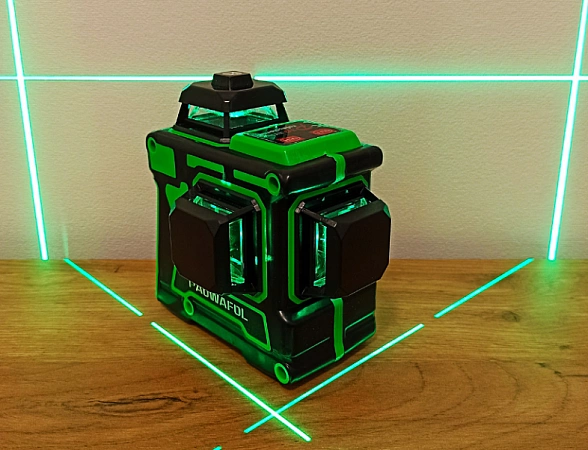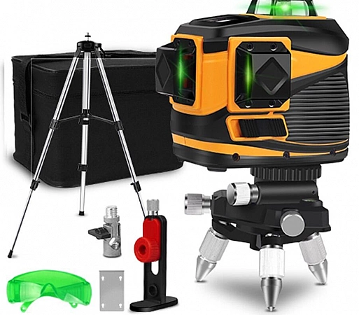 Modèle professionnel moderne pour travailler avec un espace à 360 degrés. Le contrôle de niveau s'effectue avec une télécommande ou des gestes. Le niveau peut être fixé à des structures métalliques avec un aimant. Ici c'est assez puissant. 4 lignes laser créent un point d'aplomb et un point nadir. La batterie durera plusieurs heures de fonctionnement. L'appareil plaira non seulement fonctionnellement, mais aussi esthétiquement. Le bon marché des matériaux du boîtier n'est trahi que par la surface rugueuse du plastique chinois. Le kit comprend un riche ensemble d'accessoires, qui est fabriqué, étonnamment, avec une haute qualité. De plus, le niveau est transporté en toute sécurité car le pendule est ici bloqué. Et ce n'est pas dans la plupart des modèles bon marché.