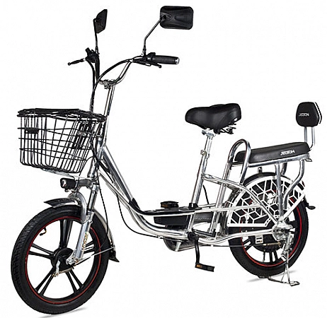 Ce modèle a été créé spécifiquement pour les coursiers. Ce sont eux qui devraient apprécier la capacité de la batterie. Si vous dépensez sa charge avec parcimonie, sans cesser de pédaler, alors la nécessité de brancher l'adaptateur secteur peut ne survenir qu'en fin de journée. De plus, le vélo électrique a reçu un coffre et un panier avant. Cela devrait faciliter le transport de petites charges. Ce modèle se distingue également par les rétroviseurs avec lesquels le volant est complété ici. Cela signifie que vous ne pouvez pas avoir peur d'aller sur la voie publique. Même malgré le modeste diamètre des roues de 18 pouces. Peut-être que le seul inconvénient sérieux de ce modèle est son poids. Il s'est avéré trop impressionnant.
