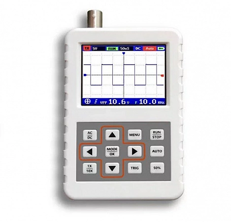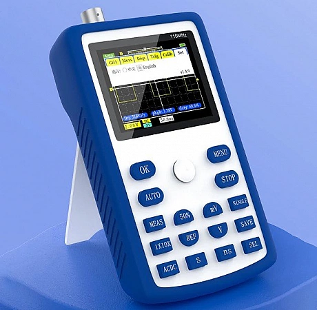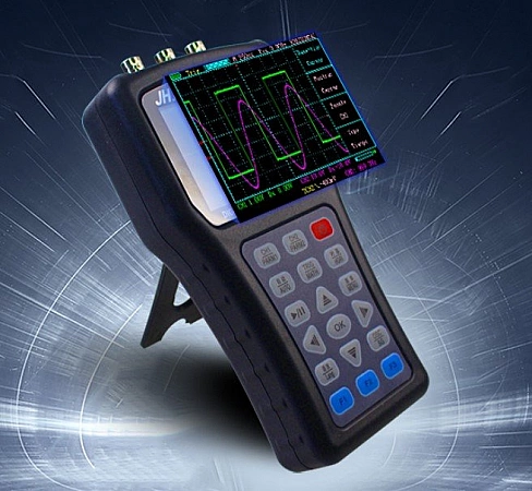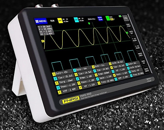 KKMOON ADS1013D nu este cel mai popular osciloscop de pe AliExpress, deși acest model de tabletă este vândut instantaneu în alte magazine. Are un display gigant cu rezoluție bună și o baterie încăpătoare. 1 GB de memorie internă este suficient pentru a stoca mii de capturi de ecran și seturi de date. Setările de scanare verticală sunt independente, este permisă utilizarea simultană a 2 canale. Dispozitivul este potrivit pentru verificarea senzorilor, configurarea amplificatoarelor și a surselor de alimentare, dar nu va funcționa cu circuite digitale. Recenziile scriu că osciloscopul este bine făcut, suportul este confortabil, senzorul este receptiv. Managementul nu poate fi numit intuitiv, dar totul este descris în detaliu în instrucțiuni.