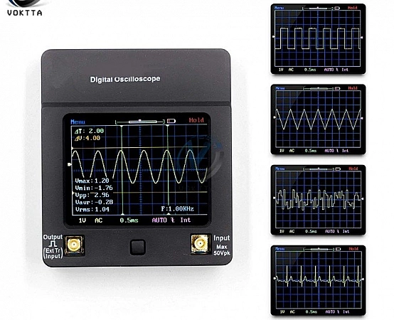 Pentru cei care doresc să economisească bani sau să se distreze construind singuri un osciloscop, există kituri speciale DIY pe AliExpress. Modelul Gaqqee DSO138 este vândut în două versiuni - un dispozitiv deja asamblat sau un kit de piese.Toată această distracție este relativ ieftină. Conform caracteristicilor, osciloscopul nu este inferior HLFEC DSO150 și cântărește și mai puțin - doar 156 g. Cumpărătorii nu au fost destul de mulțumiți de pachetul produsului. Nu există sursă de alimentare în pachet, nu există suficiente șuruburi și este mai bine să cumpărați sonde separat. Dar există o instrucțiune detaliată, iar calitatea pieselor depășește semnificativ prețul. Printre minusuri se mentioneaza doar livrarea, care poate dura cateva luni.