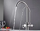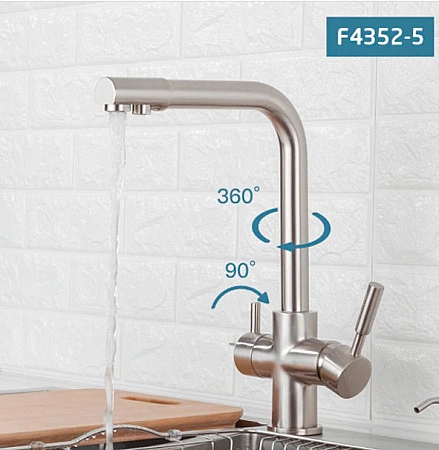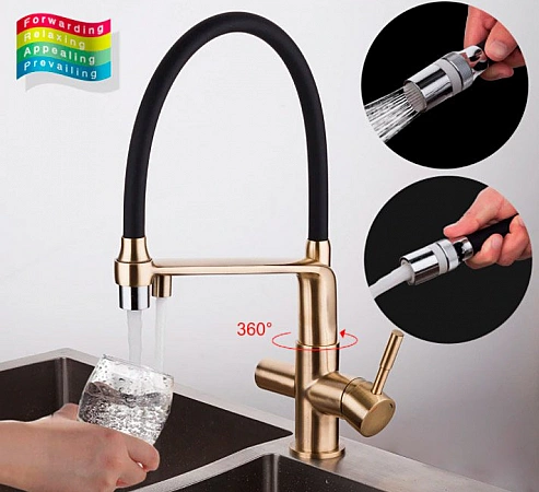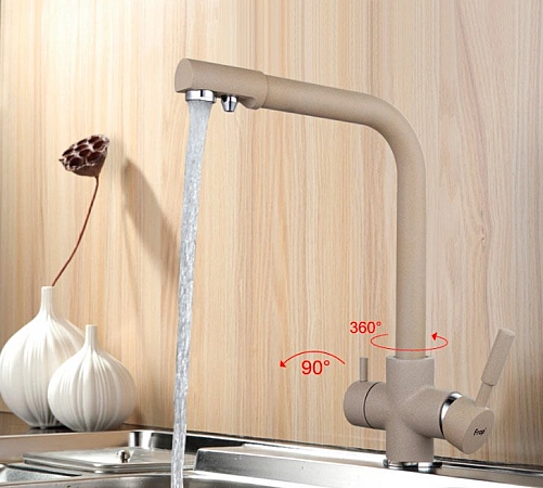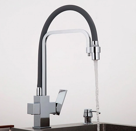 Elegantul robinet cu durată lungă de viață se deosebește de concurenții săi prin prezența mai multor așchii simultan: alimentarea cu apă obișnuită și potabilă cu reglare separată a fiecărui debit, o gura de scurgere retractabilă și robinete pivotante.