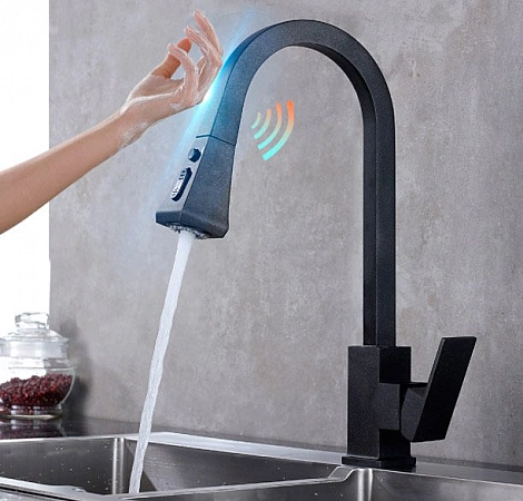 O caracteristică a acestui mixer este prezența senzorilor responsabili cu deschiderea robinetului. Ele reacționează la mișcare, reducând astfel la minimum consumul de apă. Construcția este puternică și fiabilă, cu cel mai bun aspect. Producătorul folosește cartușe de înaltă calitate din propria sa producție. Un plus util este o cutie de udat retractabilă, care poate fi folosită pentru a spăla vase mari. Duza este ascunsă în interiorul robinetului și este atașată la un furtun, a cărui lungime este de până la 80 cm. Există două moduri de funcționare - un duș și un jet de apă. Este prevăzută o pârghie pentru reglarea temperaturii. Bateriile de acest tip sunt cele mai sigure, pentru că cu ele poți uita de gândul obsesiv: „Am închis apa când am plecat de acasă?”.