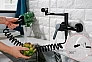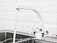 Modelul este conceput pentru bucătari avansați care percep bucătăria ca pe o rampă pentru cele mai îndrăznețe proiecte. Robinetul arată elegant și modern datorită designului neobișnuit al unui mic gura din L tubular cu o gura pivotantă și un furtun flexibil cu un cap de duș. O spirală curbată acționează ca un suport. O gura de scurgere statica si o udare flexibila pot functiona in doua moduri: jet aerat si continuu. Reglarea macaralelor se face prin pârghii separate cu management lateral. S-a dovedit o stație întreagă de spălat pentru bucătărie într-o singură clădire. Prețul pentru o astfel de funcționalitate este destul de acceptabil. Robinetul arată grozav pe insula bucătăriei și vă permite să spălați rapid legumele și vasele voluminoase.