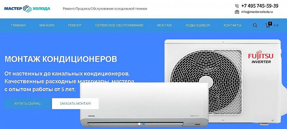 Master of Cold a obținut cel mai mare punctaj în clasament. Există multe recenzii de la clienți, există doar câteva plângeri cu privire la calitatea muncii. Practic, compania este laudata pentru timpul minim de asteptare, instalare rapida, amabilitatea instalatorilor. Compania vinde și instalează echipamente de climatizare, dar mai des apelează aici pentru reparații. Totul se face în Master of Cold - de la reumplerea cu freon până la repararea plăcilor de control pentru aparatele de aer condiționat. Prețurile sunt medii, nu le poți numi mici. Dar se compensează cu calitatea lucrării. Cererile sunt procesate rapid, adesea echipa sosește chiar a doua zi. Există transferuri ale datei instalării sau reparației, dar rar, doar din cauza unor circumstanțe care nu pot fi controlate de companie. Să adăugăm un mic minus - nu există prețuri în catalogul echipamentelor climatice de pe site, managerii le exprimă la cerere. Acest lucru este incomod dacă nu ați ales încă un model anume.