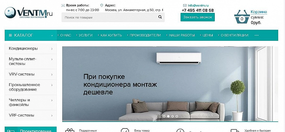 Apărând în 2002, Vent-M sa stabilit ferm în poziții de conducere la Moscova. Compania a început ca un birou mic și a devenit o companie solidă cu mii de proiecte finalizate. Organizația planifică, instalează, taxează, vinde aparate de aer condiționat. Compania nu lucrează cu echipamente achiziționate din alte magazine. Recenziile scriu despre garanția pentru echipamente și servicii. Compania cooperează cu comercianți și organizații privați, oferă rapoarte cu prețuri și un plan detaliat. Inginerii dezvoltă proiecte individuale ținând cont de caracteristicile unui apartament sau case. Comenzile sunt onorate rapid, instalarea se efectuează în aceeași zi.Timpul se discută cu clientul în avans. Pentru clienții obișnuiți există reduceri la service.