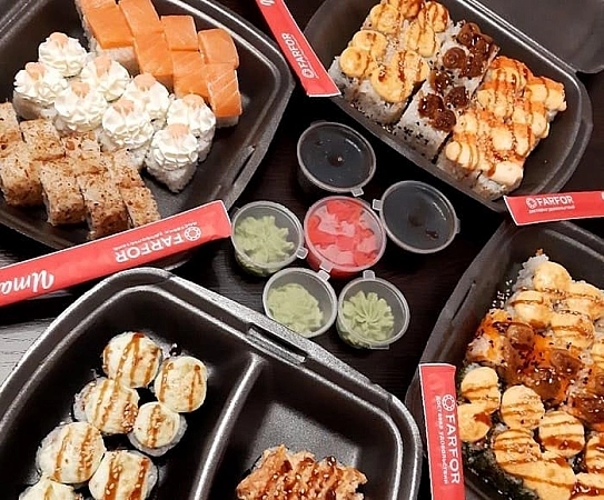 Restaurantul FARFOR, cunoscut în multe orașe din Rusia și care funcționează cu succes în Yaroslavl, vă oferă să încercați bucătăria japoneză cu livrare la domiciliu sau la birou. Există ore fericite pentru clienți când sushi, chifle și pizza pot fi comandate la un preț special. De asemenea, restaurantul oferă în mod regulat felul de mâncare al săptămânii, la comanda care jumătate din costul acestuia este transferată în contul de bonus al cumpărătorului. Comenzile de peste 300 de ruble sunt livrate contra cost, de la 500 de ruble - gratuit. FARFOR clipește destul de des în recomandările de pe forumuri și rețele sociale, totuși, pe site-urile specializate, recenziile despre acesta uneori nu sună cel mai măgulitor. În cea mai mare parte, cei care au așteptat prea mult timp pentru livrarea lor vorbesc negativ.