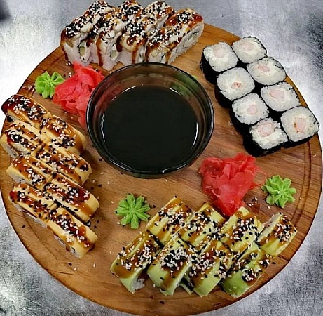 Yaponchik oferă cel mai mare număr de feluri de mâncare, inclusiv sushi și rulouri tradiționale, precum și cele de marcă cu arome și ingrediente unice.