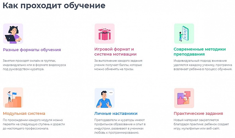 Dacă un copil este interesat de programare, merită să-i cumpere cursuri la școala online PIXEL. Acest lucru îl va ajuta nu numai să se miște rapid în domeniul promițător al inovației în viitor, ci și să facă noi cunoștințe. Cursurile sunt concepute pentru copii de diferite vârste, de exemplu, „Programare în Scratch Junior” este recomandată la 5-7 ani, „Crearea de jocuri în Roblox” la 9-14 ani, iar de la 13 ani puteți învăța cum pentru a crea site-uri web pe Tilda. Lecțiile sunt concepute astfel încât copilul să fie interesat: punctele primite pot fi schimbate cu premii. După finalizarea cursului, toți studenții primesc certificate și proiecte creative gata făcute.