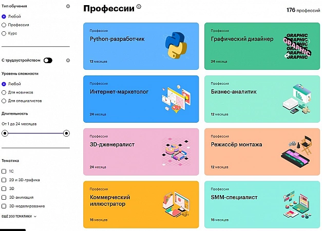 Numărul 1 dintre numeroasele platforme de învățare online din Rusia este Skillbox. Peste 18 mii de studenți au studiat deja aici, iar numărul de vizualizări ale webinarului pe lună ajunge la 40 000. Cursurile sunt prezentate în cele mai populare domenii: design, marketing, programare, management de proiect, IT, business și bloggeri. Lectorii oferă doar informații relevante și interesante. Lucrarea se desfășoară în timp real cu ajutorul webinarilor și prelegerilor video. Temele sunt verificate manual de către instructorii cursului. O diferență importantă între Skillbox este că aici puteți obține cunoștințe reale care pot fi aplicate cu ușurință în practică. Pentru studenți, există o tehnologie de 24 de ore. a sustine. Întreaga pregătire este organizată astfel: elevul urmărește o lecție video, finalizează sarcina, primește o analiză video a muncii sale cu erorile evidențiate, le corectează și trece mai departe. Dacă faci prea multe greșeli, va trebui să treci din nou prin lecție. Costul mediu al fiecărui program este de 50 de mii de ruble. Dar pentru primele 20 de persoane care se înscriu, prețul este redus cu 20%.La absolvire, studentului i se oferă posibilitatea de a face un adevărat stagiu sau de a obține un loc de muncă într-o companie bună. Avantaje: toți profesorii au o experiență practică vastă, cele mai bune recenzii ale studenților, o mare varietate de cursuri pe subiecte populare, instruire pentru începători și profesioniști, o platformă convenabilă. Contra: Prețurile sunt peste medie.