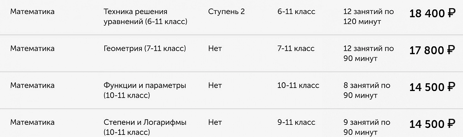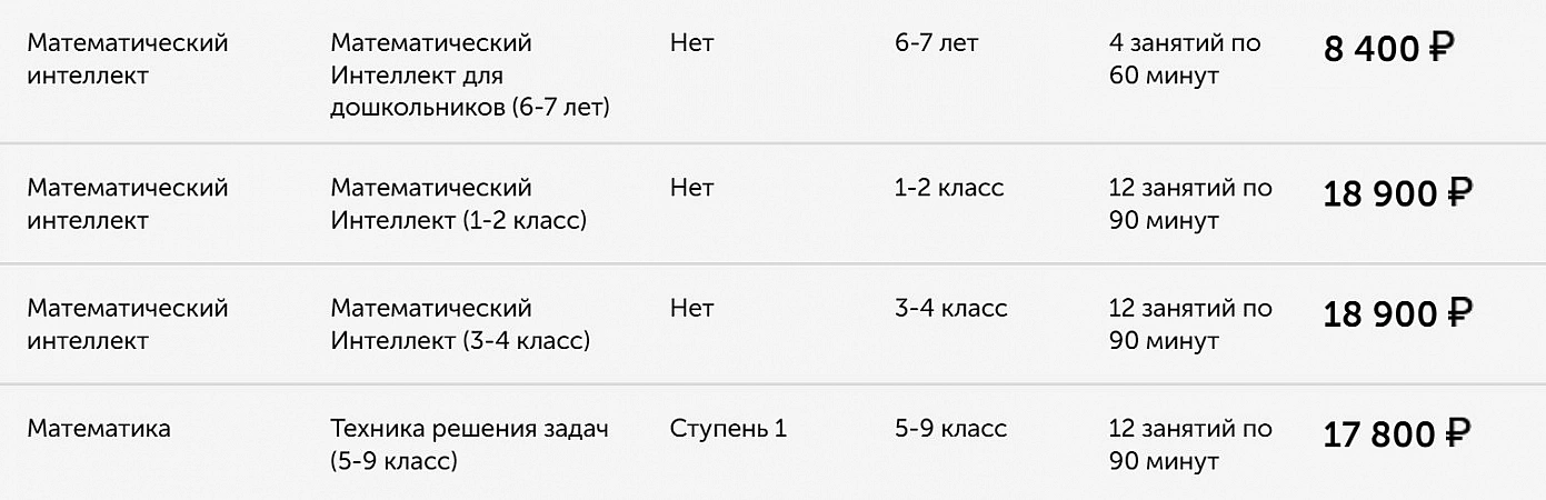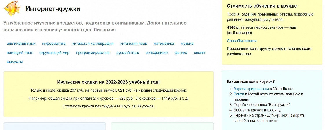 Platforma are cele mai mici prețuri pentru cursuri și cercuri din selecție. Pentru un an, costul este de la 3000 la 5000 de ruble.