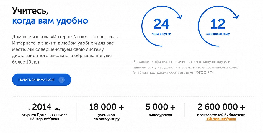Școală online din clasele 1 până la 11, la finalul căreia se eliberează un certificat de stat. probă. Există, de asemenea, lecții video gratuite de matematică cu simulatoare de întărire și teste.Judecând după recenzii, majoritatea studenților le place să studieze aici: nu există nicio referire la timp. Pentru o lună, plata variază de la 1200 la 7500 de ruble, cursurile suplimentare, precum și munca cu un tutore, sunt plătite separat. Școala are propriul personal de profesori, sunt utilizate materiale care respectă Standardul Educațional Federal de Stat. Adevărat, site-ul, precum și asistența tehnică, sunt în mod vizibil predate pe fundalul altor avantaje ale Lecției de Internet. Mulți se plâng de calitatea slabă a imaginii din tutorialele video, de defecțiuni periodice în timpul livrării teledetecției și testelor. Un alt moment neplăcut - în această școală trebuie să plătiți suplimentar pentru încercările repetate de a trece certificarea. În plus, există plângeri cu privire la refuzul de a accepta îngrijirea copilului dacă nu se face în scris. Dar majoritatea școlilor online nu au o bibliotecă online atât de bogată și participare gratuită la curs ca aici.