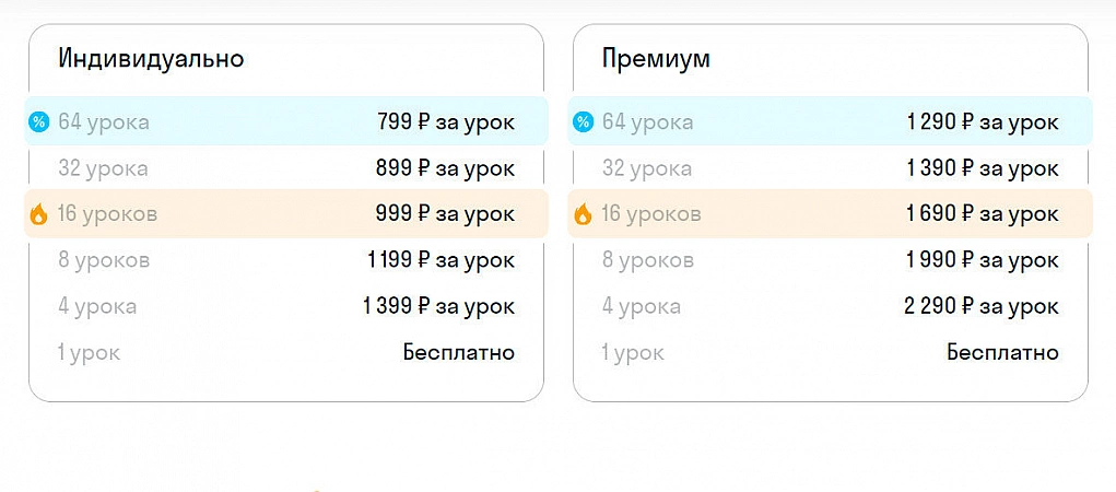 • Nu există lecții separate: trebuie să cumpărați prin tarife