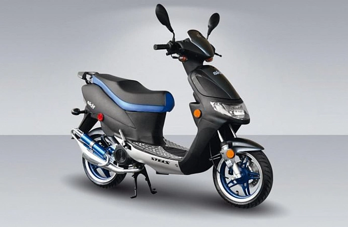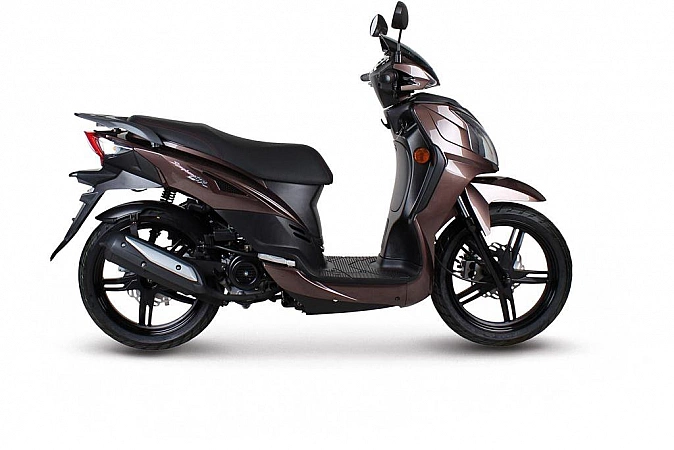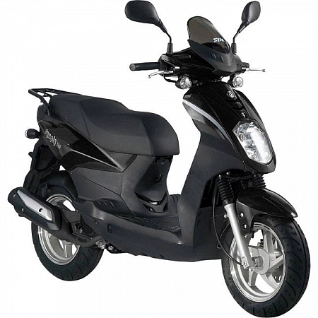 Producătorul chinez Sym, larg reprezentat în Rusia și CSI, încearcă întotdeauna să fie la zi, lucrând cu atenție nu numai latura tehnică a echipamentului său, ci și aspectul său. Liniile întrerupte vă atrag imediat atenția, făcând un scuter mic cu adevărat brutal. Optica duală adaugă stil, la fel ca și panoul LED. Există, de asemenea, stopuri cu LED și iluminare sub caroserie. Din punct de vedere tehnic, aceasta este cea mai bună mașină pentru începători, echipată cu un motor de 50cc care produce 4,5 cai putere. Este suficient pentru a transporta două persoane sau bagaje cu o greutate de până la 120 de kilograme inclusiv.