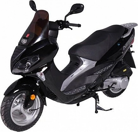 Principalul avantaj al acestui scuter este prețul său. Găsirea unui dispozitiv mai ieftin este puțin probabil să reușească, în timp ce acesta are caracteristici destul de adecvate. Motorul de 49 cmc produce aproape trei cai putere. Puțin, dar pentru un astfel de model este destul. Este suficient chiar și pentru a transporta două persoane. Pentru pasager, aici sunt prevăzute suporturi speciale pentru picioare, făcând călătoria mai confortabilă și mai sigură. Nu trebuie să vă faceți griji cu privire la supraîncălzire. Scuterul este echipat cu răcire forțată, care poate reduce temperatura chiar și la căldură extremă. Cu toate acestea, nu ar trebui să vă așteptați la mare lucru de la un astfel de copil.Prețul mic nu afectează cel mai durabil plastic. Există și reclamații legate de cabluri.