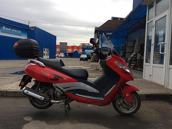 Dacă aveți nevoie de un scuter care poate parcurge cu ușurință sute de kilometri și nu veți experimenta niciun disconfort, atunci asigurați-vă că acordați atenție acestui model. Nu este cea mai ieftină opțiune, dar prețul său este pe deplin justificat de caracteristicile tehnice și ergonomice. La bord este instalat un motor puternic de 250 cmc, oferind aproape 20 de cai putere. Scuterul vă va transporta cu ușurință pe dumneavoastră, pasagerul și bagajele plus. Greutatea totală a încărcăturii este de 240 de kilograme, iar un portbagaj încăpător și accesorii pentru genți laterale vă vor permite să luați tot ce aveți nevoie într-o călătorie. De asemenea, aici o ergonomie atentă. Conducerea este cât se poate de confortabilă chiar și în călătoriile lungi.