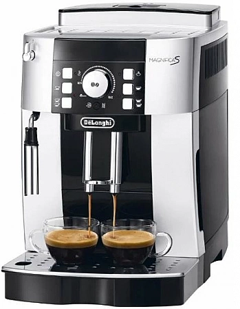 Aparat automat de cafea espresso cu cappuccinatore, control al tarii, control al temperaturii.Are multe opțiuni suplimentare - abur rapid, pre-umezire, reglarea durității apei, decalcifiere automată. Putere mare - 1450 W, presiune 15 bari, cafeaua se prepara rapid. Rasnita de cafea incorporata este proiectata pentru 250 de grame de boabe. Există 13 grade de măcinare, ceea ce nu se găsește la toate aparatele de cafea mai scumpe. Judecând după recenzii, acesta este unul dintre cele mai bune modele Delonghi. Utilizatorilor le place calitatea construcției, designul. Cafeaua iese delicioasă, laptele pentru cappuccino se bate bine. Aparatul de cafea este ușor de spălat - toate recipientele necesare sunt îndepărtate. Singurii utilizatori negativi numesc lipsa cupelor de încălzire.
