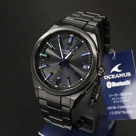 Modelul din oțel al ceasului de mână pentru bărbați din linia Oceanus apare pentru prima dată în culoarea ultra-neagră. Aceasta nu este doar vopsea, ci un tratament special de placare cu ioni care îmbunătățește caracteristicile suprafeței metalice și o face invulnerabilă la deteriorarea mecanică. Datorită funcției de sincronizare cu un smartphone, noutatea corectează automat calendarul și ora, inclusiv ora mondială: la traversarea unui alt fus orar, mâinile se deplasează automat în poziția dorită. De asemenea, arată atractiv și funcția de economisire a energiei de la soare, cu care ceasul poate funcționa până la 3 ani în întuneric complet.