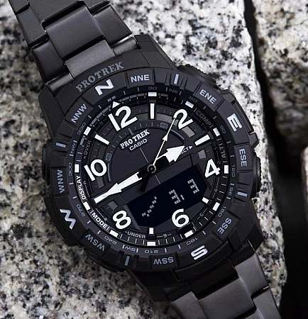 Cel mai recent reprezentant al Casio Pro Track este interesant pentru călători, alpiniști, turiști de munte și cei mai disperați iubitori de activități în aer liber. Seria PRT-B50, căreia îi aparține noutatea, este deja cunoscută de fanii mărcii ca fiind un echipament de încredere care va face orice mediu exterior mai confortabil și mai sigur. Modelul se deosebește de predecesorii săi prin rezistența crescută la zgârieturi pe brățară - în acest scop, este prelucrat folosind tehnologia IP Finish. Partea funcțională a devenit și mai avansată, a devenit posibilă înregistrarea punctelor cheie ale traseului cu indicarea înălțimii, care sunt suprapuse pe hartă în aplicația ProTrek Connected.