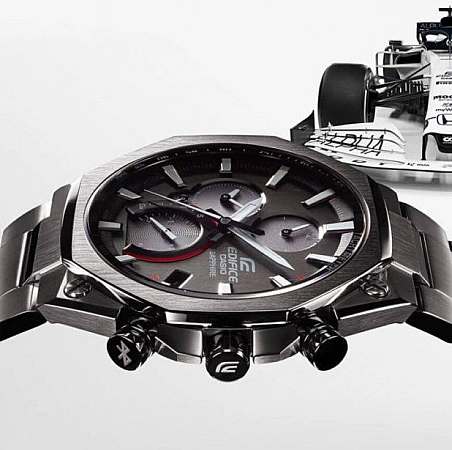 Recent, compania a completat colectia de ceasuri Edifice cu o noutate, care se remarca printr-o carcasa subtire din otel inoxidabil cu finisaj mat. Rama este octogonală - un tribut adus modei pentru Omega elvețian, Royal Oak și Hublot. O altă caracteristică a modelului este că este echipat cu un modul Bluetooth, datorită căruia se conectează automat la un smartphone pentru auto-tuning, sincronizare oră sau căutarea unui telefon pierdut. Un detaliu la fel de interesant este alimentarea de la o baterie solara, care, impreuna cu tehnologia de economisire a energiei, asigura o durata de viata indelungata la o singura baterie: pana la 5 luni. Funcționalitatea ceasului este impresionantă, dar din anumite motive cei de la Casio au considerat iluminarea de fundal inutilă.