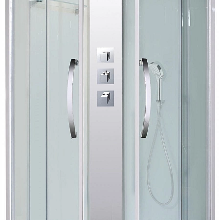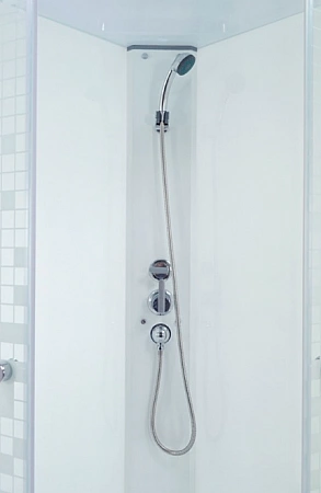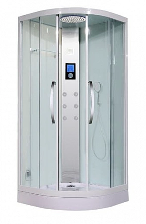 O cabină de duș de colț multifuncțională și foarte confortabilă cu o tavă joasă de la producătorul finlandez Timo. Aici, în spațiul 90x90, există un maxim de setări utile. Aromaterapia și baia turcească sunt excelente pentru relaxare. Două tipuri de hidromasaj vor îndepărta tensiunea și vor încânta iubitorii de viață activă cu o relaxare profundă. Puteți chiar să ascultați CD-urile preferate în cabina de duș. Datorită difuzorului telefonului dvs., nu veți pierde un apel important. Iar radioul și touchpad-ul vă vor face dușul de ploaie de dimineață și mai pozitiv. Cu toate acestea, o astfel de funcționalitate puternică vine cu un preț foarte mare al unei cabine de duș. Dintre micile minusuri, remarcăm lipsa bluetooth-ului și capacitatea de a conecta telefonul la cabină.